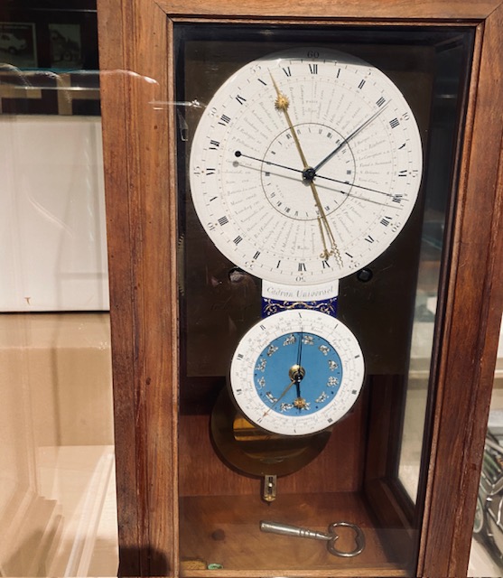 The French revolution has certainly been a turning point in the development of democracy. The radical changes proposed at that time comprised changes to the calendar and the counting of time. Rather than a clock using a system based on the system of multiples of 12, 24 hours for a day and 60 minutes per hour, the revolution proposed to shift to a time system based on multiples of 10, just as for weights, lengths or volumes. After decimal time had been adopted in 1793 it was disbanded in 1795 as being too revolutionary and declared a failure. We keep being used to 60x24h= 1440 minutes per day rather than for example a 10×100 =1.000 time intervals for a day. We are just so used to acquired habits that behavioral patterns have taken hold of us without us even noticing them. Maybe AI will eventually tell us to adapt because of computational speed of a superior time measurement system just based on a 0/1 based alternative counting algorithm. (Image: Universal dial regulator, Fail collection Musée Arts et Metier, Paris).