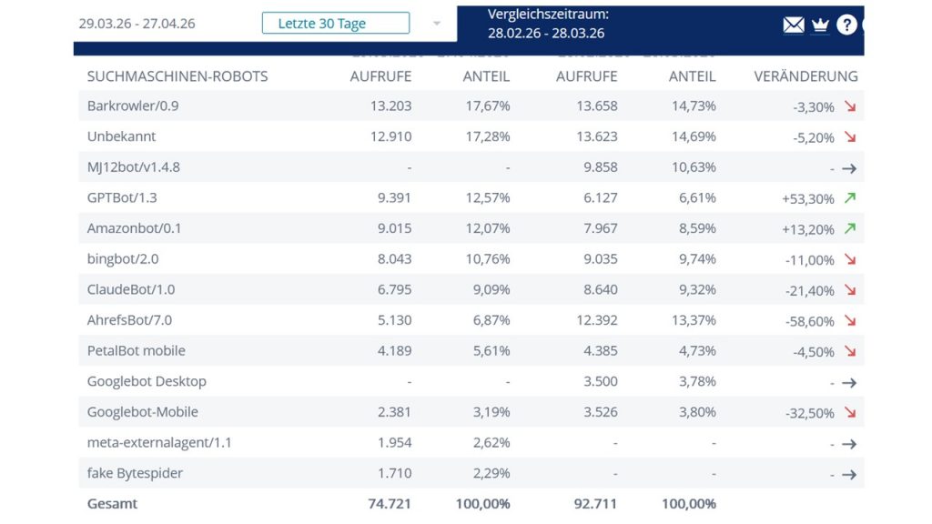 (Image: Page visits between 2026-3-29 to 2026-4-27 compared to month before same year)