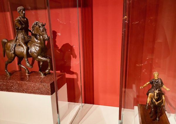 The depiction of Marc Aurel as Emperor has become a trade mark in the history of art and politics. As an emperor with good horse riding skills, Marc Aurel was the first emperor to be portrayed as riding on a horse without saddle whilst, of course, in perfect skill to master the horse and give orders or strategic commands. Many subsequent emperors, Napoleon or Friedrich have had their power positions “immortalised” as such, which served at the same time to make them appear taller and “in command” of something.