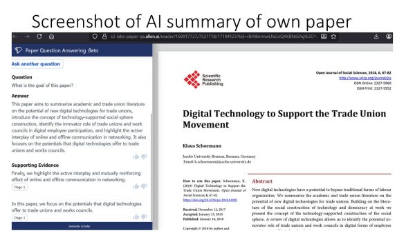 It has become much harder to evaluate the degree of innovation of a candidate for a scientific degree. Tools like retrieval-augmented Language Models enhance the scientific potential of generative AI since they extract more or less short citations directly from the original source just next to the original based on a simple query of author and approximate subject (see screenshot below of own previous publication).