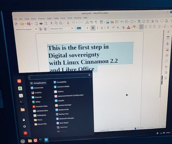 We have become rather lazy and sometimes even ignorant when it comes to what kind of operating system we use on our computers. The phasing out of security support for Windows 10 based computers creates worldwide a huge pile of computers that cannot update to 11 due to limited hardware 4Gb of active memory only. However, for many simple tasks these computers work perfectly fine. Browsing through the internet or just drafting texts or spreadsheets doesn’t ask for larger sizes of memory. Most AI applications run on the web and not locally on your computer. No need to throw away these devices and spend, spend, spend on the latest technology. It takes a bit of time and effort to read through the guides for such a shift. Maybe you need to come back several times between documentation and a bit of trial and error, but the learning of digital skills is always a rewarding experience as well. My fanless computer will serve me for many more years as a quiet companion in drafting blog entries and research. Additionally, it is a step towards digital sovereignty so many people talk about these days. (Image: Computer Screen with Linux cinnamon 2.2 and Libre Office in background).