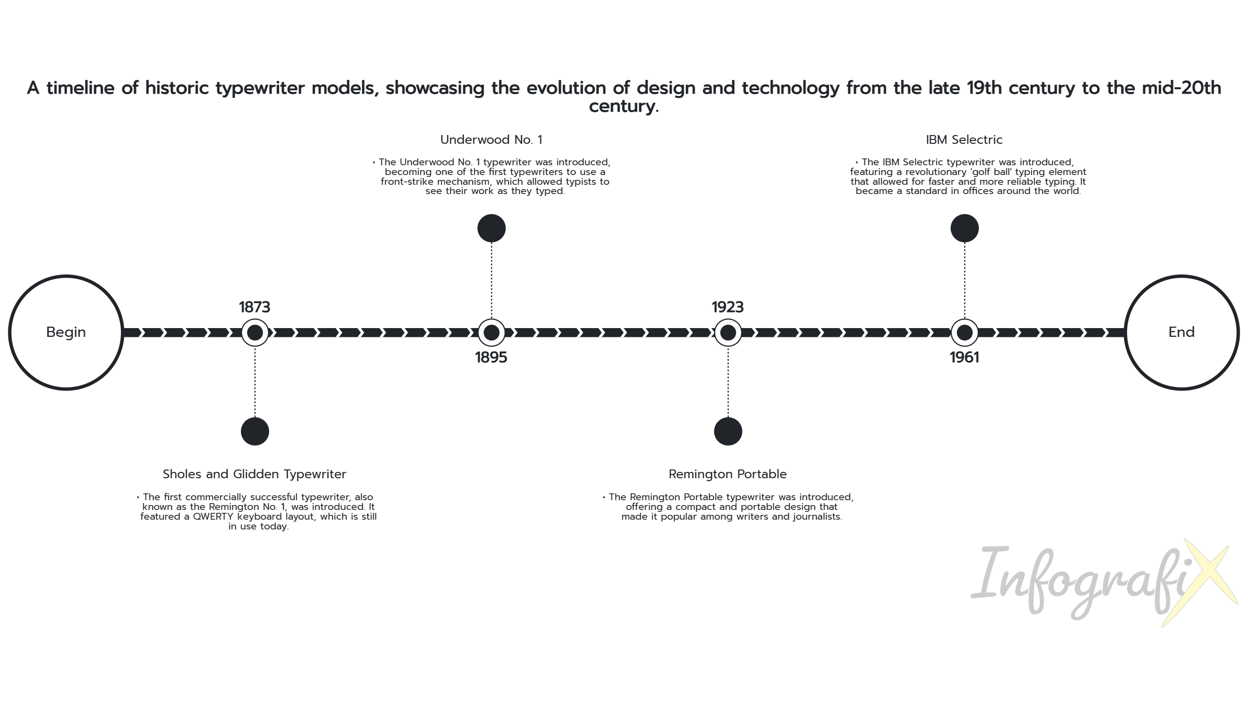 The history of the typewriter and typewriter is comparatively short compared to the history of literature or other technologies as partners in the creative process. With the advent of AI (here as part of infografix, see image below) the skills of using and mastering a typewriter have become almost obsolete. The original design by Remington (timeline below) has dominated for almost 100 years the technology of typewriters. Then came the electronic IBM technique with an automated correction type, which was not only faster, but also more forgiving of “typos”, short for typing errors.
